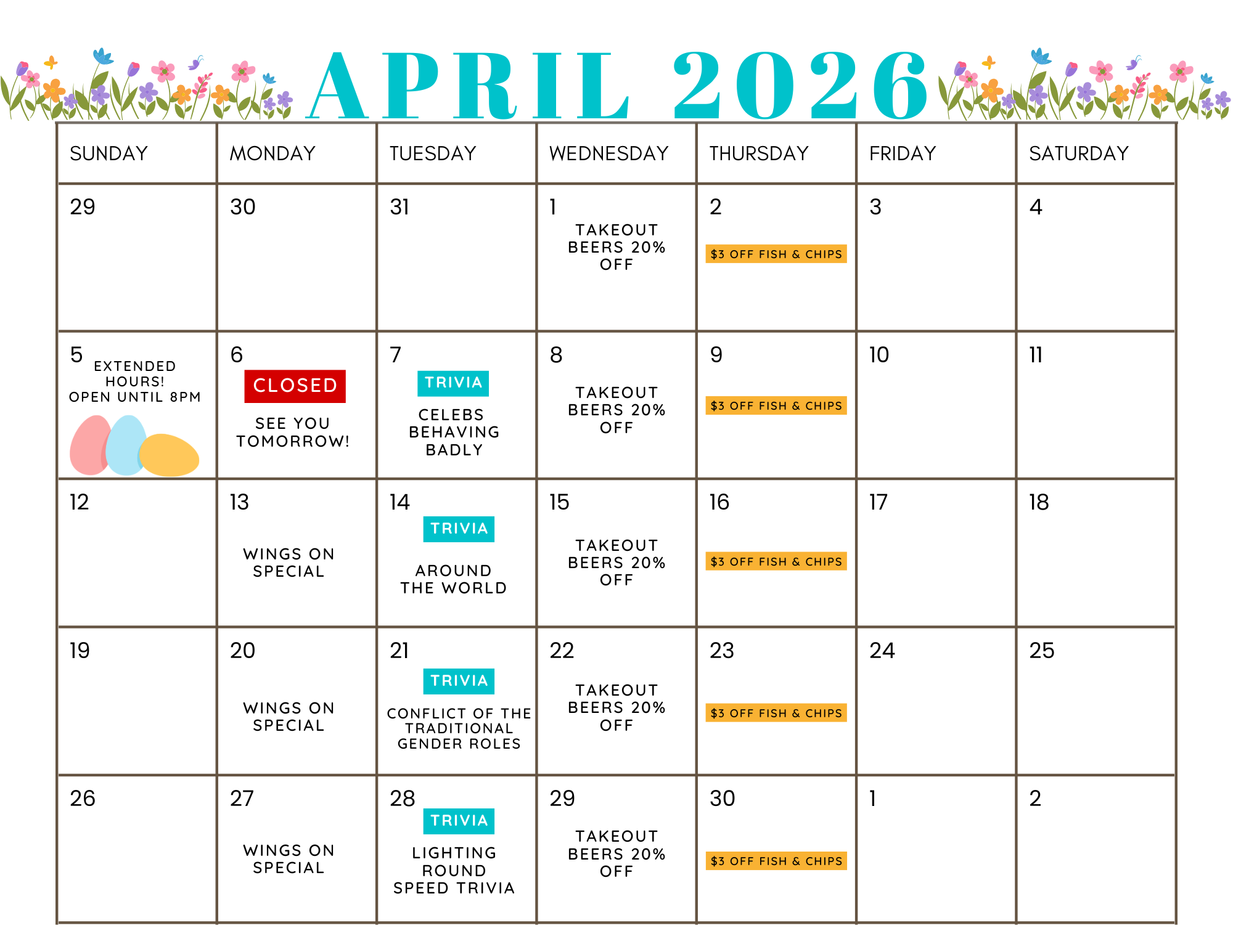 Take a look at what we have going on for the month of April!
