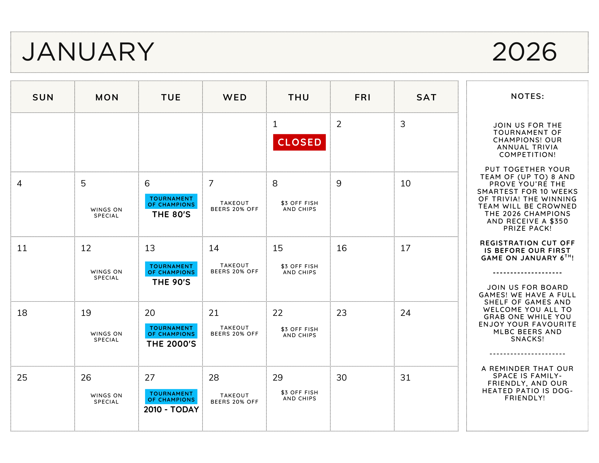 Take a look at what we have going on for the month of December and January!